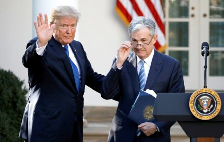 这是2017年11月2日在美国华盛顿白宫拍摄的特朗普(左)和鲍威尔的资料照片。 新华社发